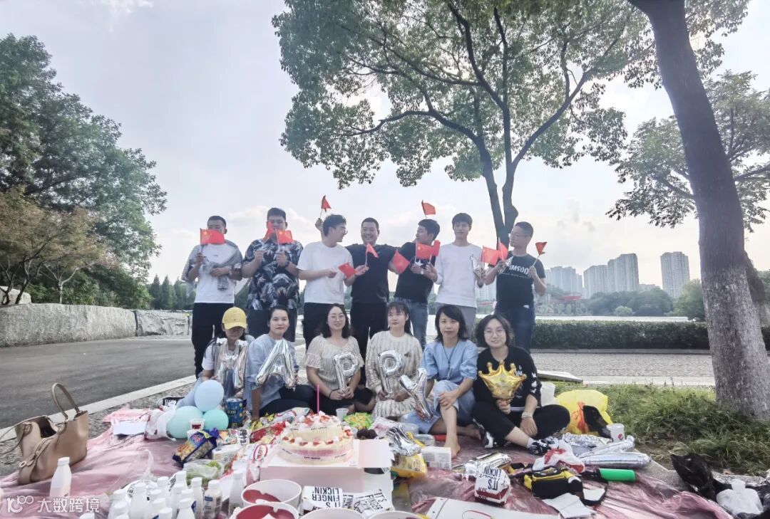 员工们齐唱生日歌,互道祝福,分享美味的蛋糕,