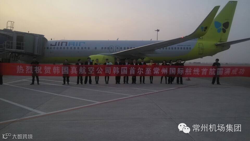 11月21日,下午15:55,一架黄色尾翼上绘有双色蝴蝶LOGO的波音737-800型飞机稳稳靠上了10号廊桥,由韩国真航空执飞的首尔仁川-常州LJ855航班,准点到达常州机场。由此,韩国真航空公司成为常州机场首家执飞航班的境外航空公司。
