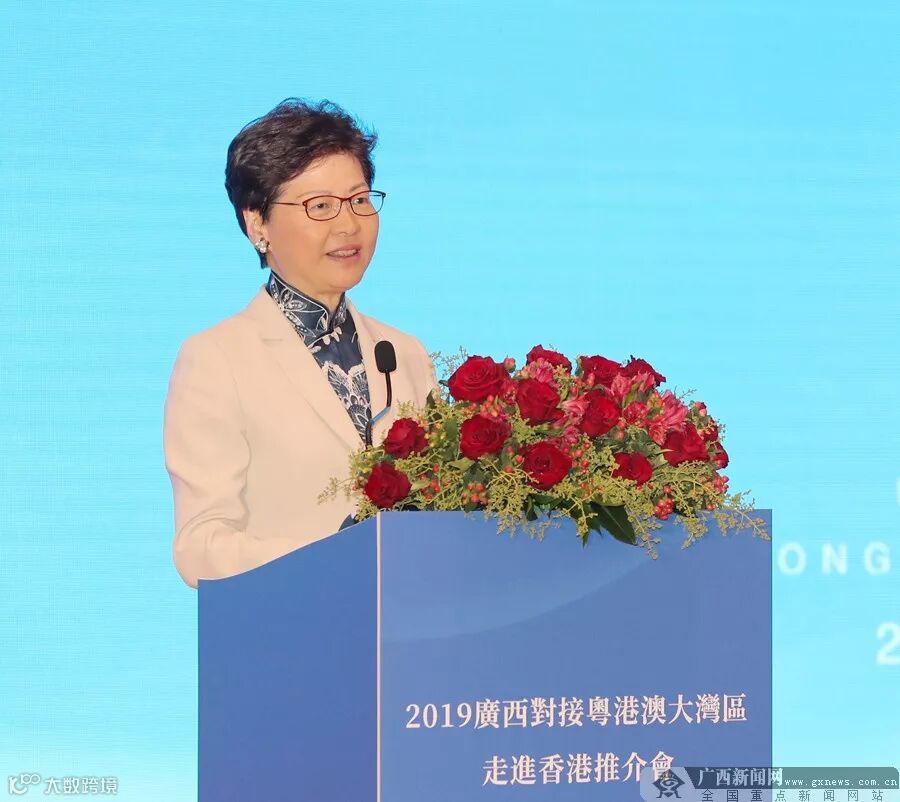5月15日,2019广西对接粤港澳大湾区——走进香港推介会在香港举行。全国政协副主席梁振英出席推介会。自治区党委书记、自治区人大常委会主任鹿心社,香港特区行政长官林郑月娥分别致辞。