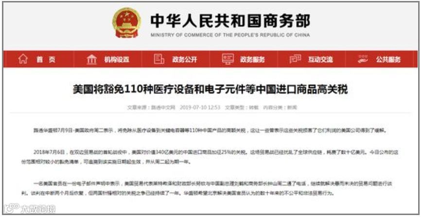 随后,美国贸易代表办公室(USTR)发布了最新一批加征关税排除产品清单通知,具体执行时间未定。USTR将在45天-90天内在联邦公报中公布。通知批准110项(产品主要为医疗设备和电子元件等)针对美国对华301征税340亿清单的产品排除申请。