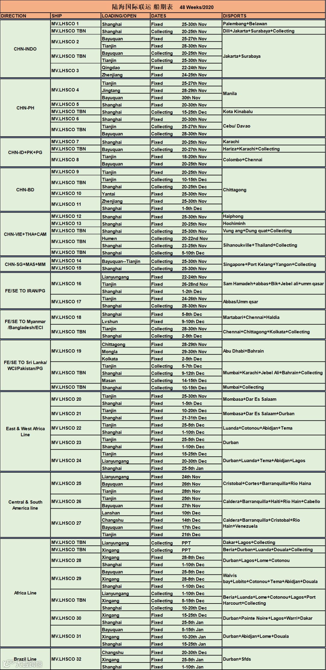 船舶动态 Fresh Tonnage Itinerary 2020-11-27 陆海国际联运