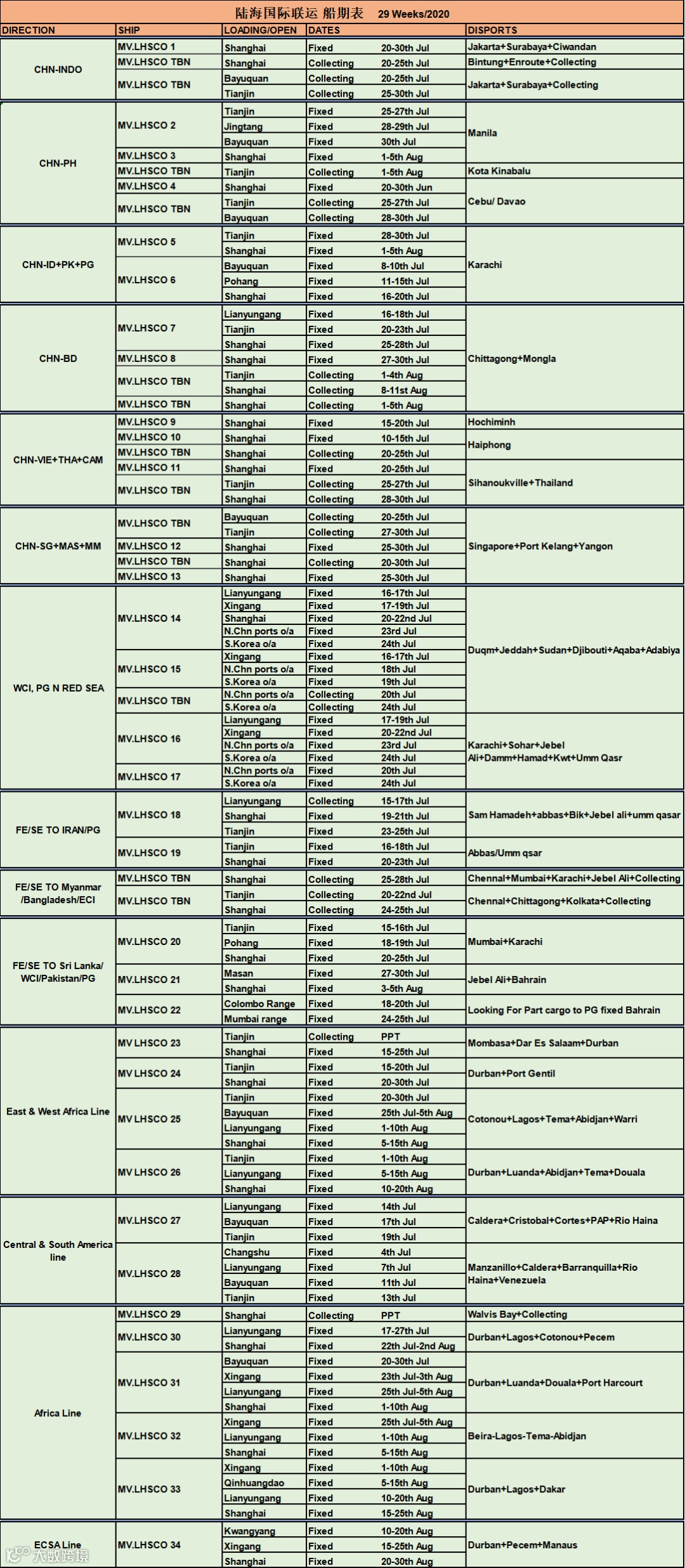 船舶动态 Fresh Tonnage Itinerary 2020-7-14 陆海国际联运