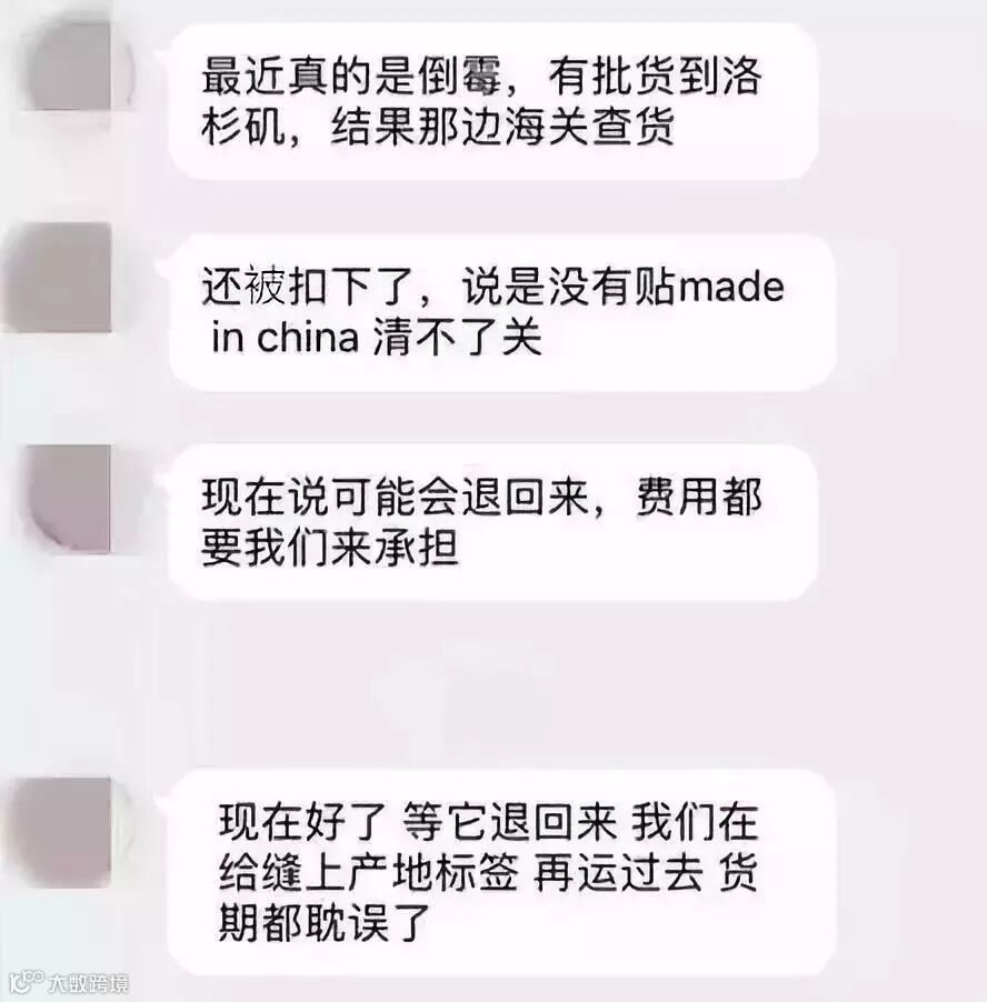 如果海关抽查到货没贴“MADE IN CHINA”标签,可能会导致海关扣留,导致原先承诺给客户的时效延误,给客户造成不必要的损失。