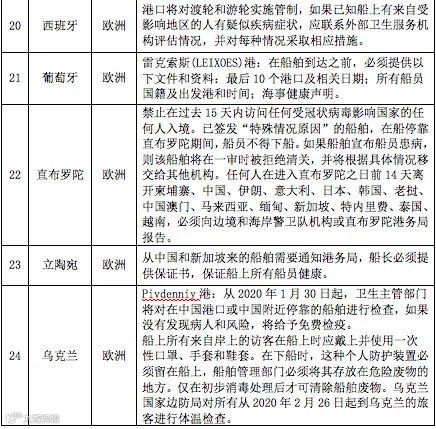 更多国家对中国船舶或船员的要求更新如下: