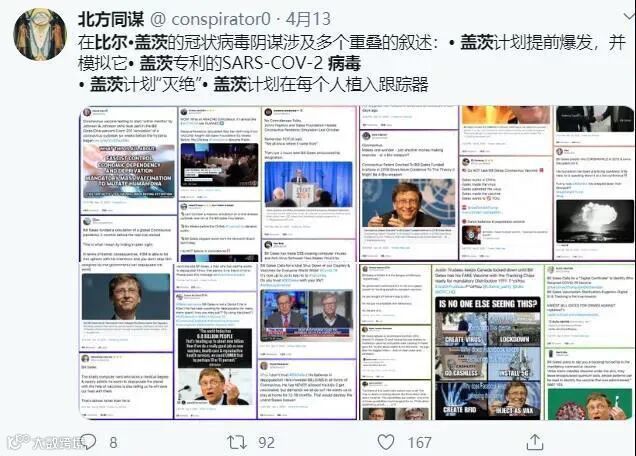 不仅如此,在先前的采访中,比尔·盖茨曾提到可利用数字证书来区分新冠病毒感染情况。这一发言随即被阴谋论扭曲为“盖茨希望在疫苗中植入微芯片监控人类”。知名阴谋论网站InfoWars当时就曾借题发挥,声称盖茨要“监控所有美国人”。