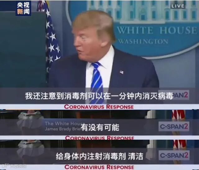 如果说以上的迷惑行为尚且出于平民,那这两天美国总统特朗普宣称可注射消毒剂消灭病毒的言论就将西方种种迷惑行为推向高潮。
