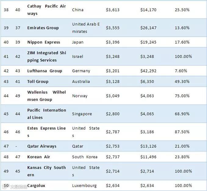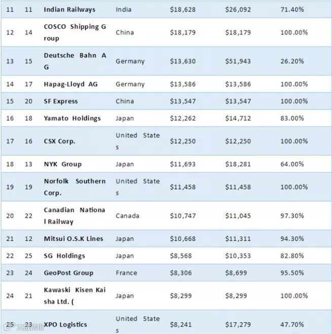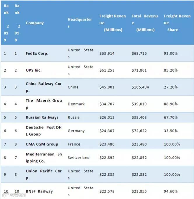 按照营业收入排序的2019全球货运50强排名出炉了!