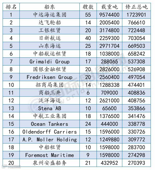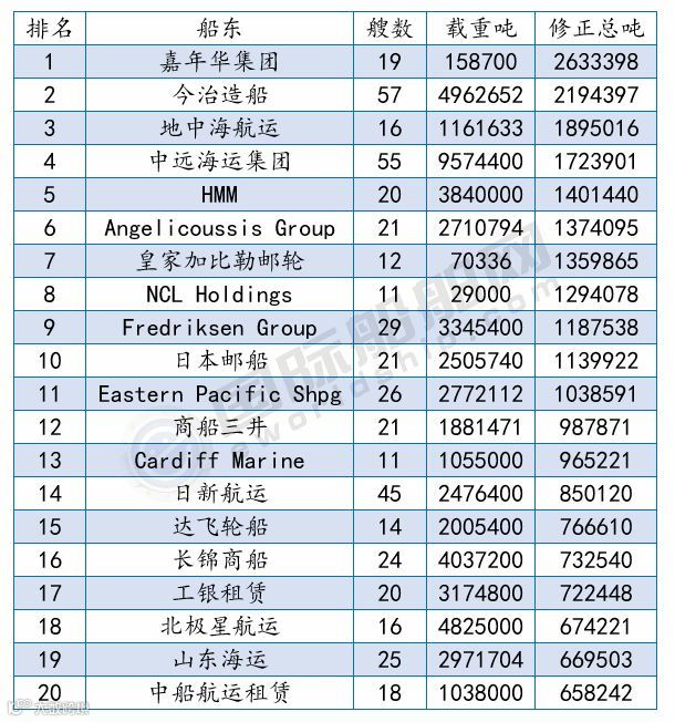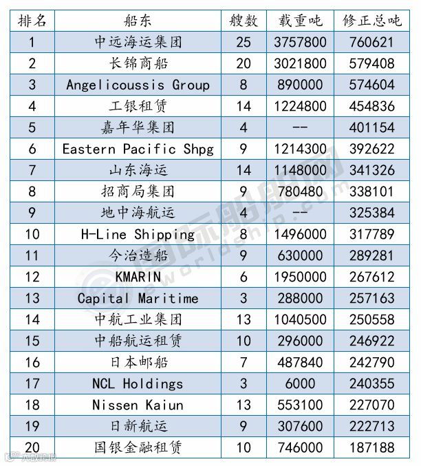 注:排名按修正总吨,数据截止2019年10月15日;数据来源:克拉克森