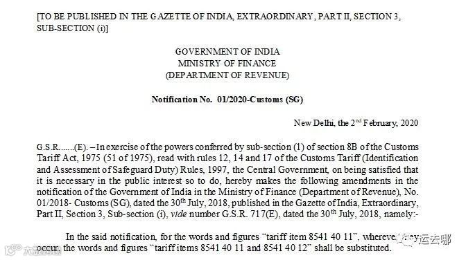 印度政府财政部长尼马拉·西哈拉曼(Nirmala Sitharaman)在其2020-21年政府预算中宣布,上调家具、鞋类、家电、手机零配件、玩具等产品的进口关税,并进一步修订关税法(Section 28DA)有关反倾销及相关措施规定以限制进口!