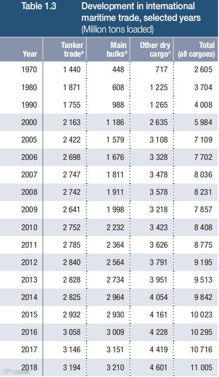当然,尽管增速放慢,2018年全球海运贸易量的绝对值仍有上升,达到历史最高的110亿吨。当然,不少积极因素也缓解着上述海运贸易的压力