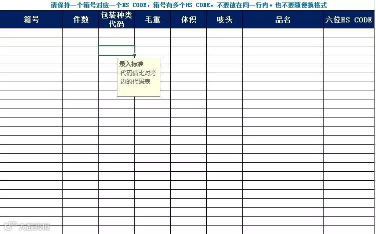 货物的 6 位 HS CODE 及对应的件重尺、品名、唛头 (请填入 EXCEL 表格中)见下文