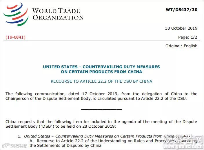 因美国未能遵守WTO的案件裁决,中国正寻求对美国实施价值24亿美元的报复性制裁。