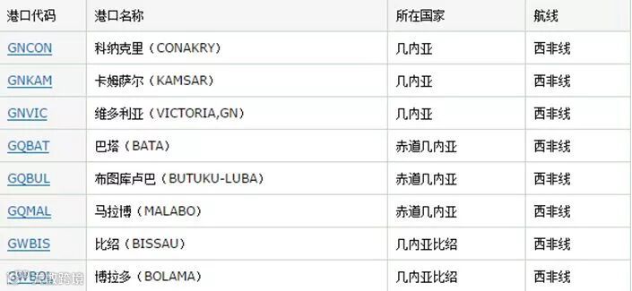 几内亚要办理 ECTN 的港口主要有:科纳克里、卡姆萨尔及维多利亚等,下列为几内亚部分港口的信息: