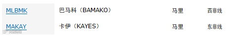 马里的港口主要有:巴马科和卡伊。下列为港口的基本信息: