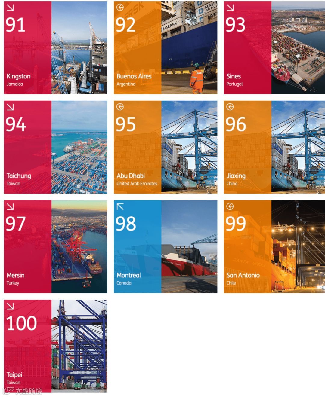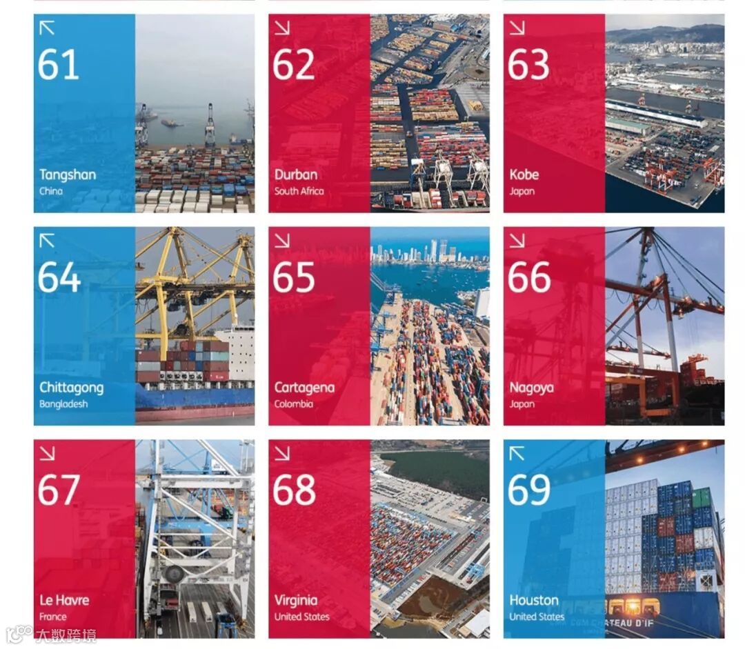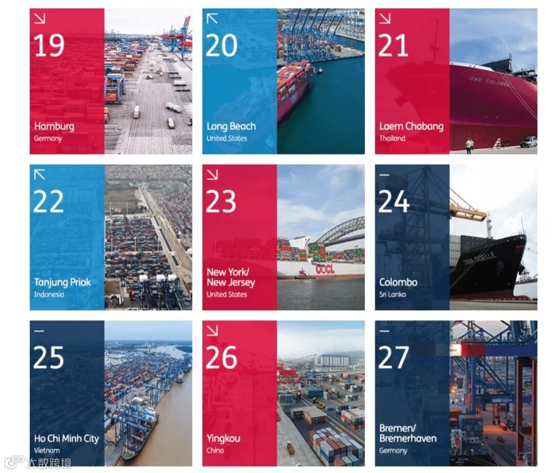 其中,丹戎帕拉斯港与长滩港排名较上年有所上升,分别从第19升至第18和第21升至第20。汉堡港排名出现下降,由第18名下跌一位至19名。其他港口排名情况与去年保持不变。