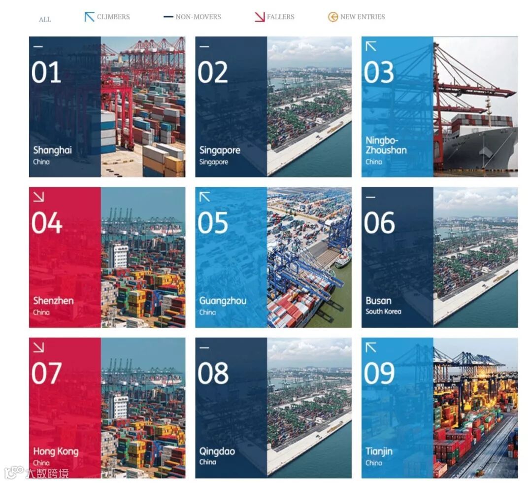 其他上榜的中国港口还有: