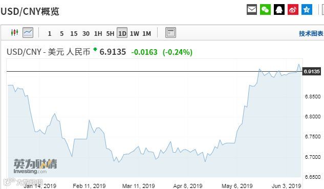 端午节期间,离岸人民币汇率一度出现短线急贬,触及6.9624,创2018年11月以来新低!