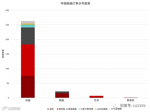 虽然有些中国公司向韩国造船厂订购新船,但是这些订单与中国国内在建船舶数量相差甚远。由于日本在某些船型建造方面颇有声誉,也有一些散货船订单尤其是小型船流向了日本船厂 。