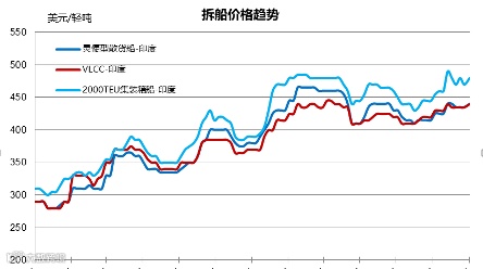 散货船拆船价格为440$/ldt,油船拆船价格为440$/ldt,集装箱船拆船价格为480$/ldt。