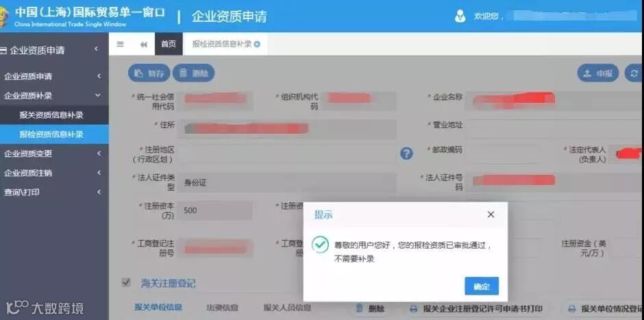 新企业完成报关注册登记后,将同时取得报检资质。