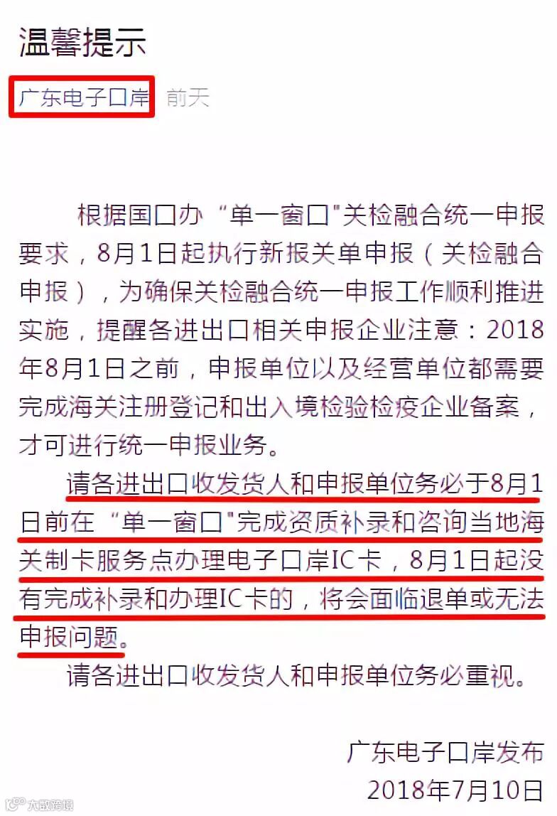 电子口岸通知来了: