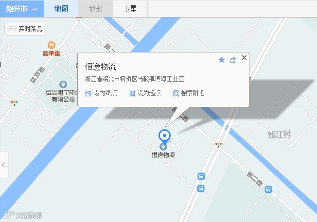 公司地址:绍兴市柯桥区马鞍镇滨海工业园区新二路与柯海路交叉口(浙江恒逸物流有限公司)