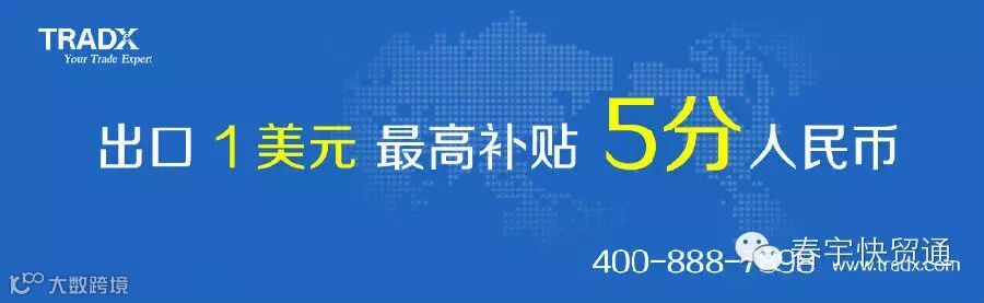 在还没赚钱之前先被坑死,这不是外贸企业想要的结果。春宇作为一家立足上海的良心外贸服务公司,一直用优质的服务赢得客户的认可,从报关、运输、出口、退税,每一个环节都由专业团队操作。为了回馈客户的信任,春宇快贸通在免代理费的前提下,推出外贸出口一美元最高补贴五分的优惠政策:给出口北美洲、南美洲的企业提供每一美元补贴5分人民币的优惠,出口欧洲、地中海、澳大利亚、新西兰的将享受到4分人民币的补贴;非洲、印度、巴基斯坦、中东、红海区域则补贴3分。