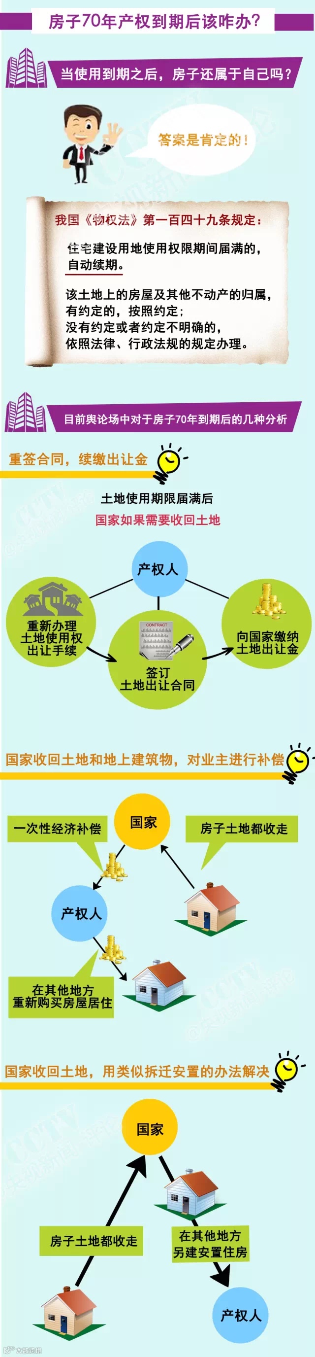 虽然目前还没有确切的答案,但是小编结合多方面信息,总结出目前舆论场中对于房屋70年产权到期的几种分析。