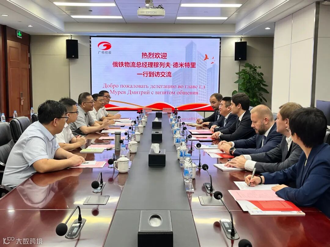俄铁物流相关负责人,集团董事会秘书、总经理助理,集团经营管理部及国际物流、广物优车负责人参加交流活动。