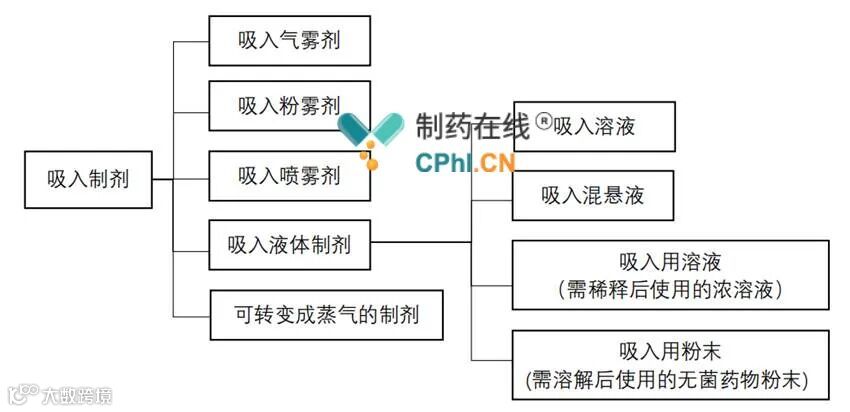 吸入制剂,系指原料药物溶解或分散于适宜介质中,以气溶胶或蒸气形式递送至肺部发挥局部或全身作用的液体或固体制剂。具有药物起效快、用药量少、局部药物浓度高而全身不良反应少等优点,主要适应症:慢性呼吸系统疾病(哮喘/肺病/呼吸等),根据《中国药典》2020版四部通则常用吸入制剂分类如下图: