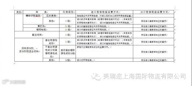 进出口饲料和饲料添加剂风险级别及检验检疫监管方式