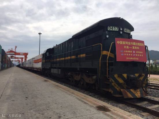 据大连港股份有限公司业务部副部长纪国良介绍,近年来,中国对俄罗斯冷藏产品出口增长迅速,2015年仅满洲里口岸出口俄罗斯的生鲜产品就达到40万吨,由于公路运输能力有限,许多货物只能销售至俄罗斯远东区域,难以到达莫斯科等核心区域。大连港依托大连东北亚国际航运中心建设,结合国家供给侧结构性改革,创新经营模式,与中铁、俄铁、中铁特货、沈阳特货公司等方面合作,有效整合各方资源,解决冷藏车体及箱源保障等一系列难题,在3月16日成功开行全国首列冷藏集装箱班列的基础上,成功开通我国首列全冷藏集装箱过境班列。