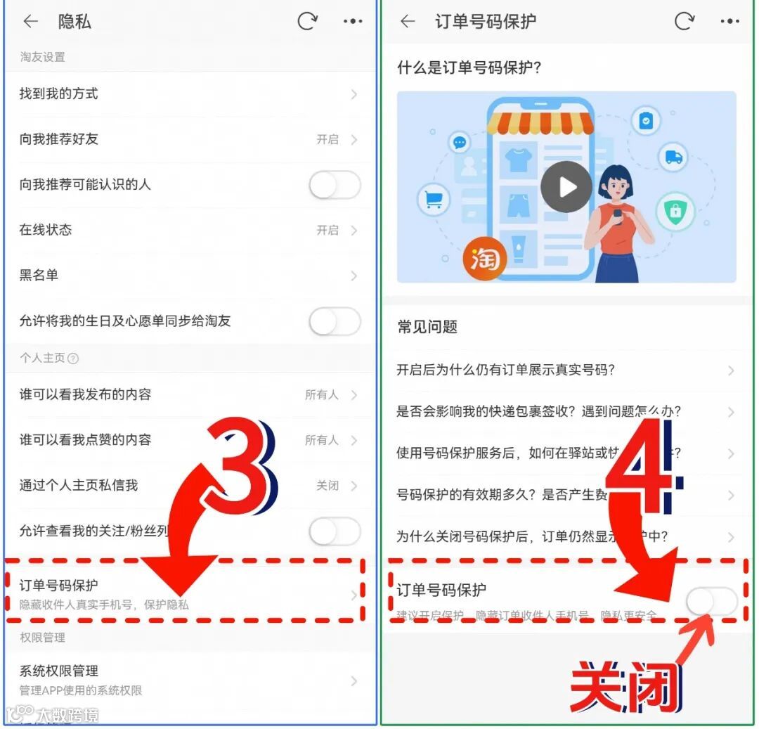 需要您在网购平台“关闭号码保护功能 ”。以淘宝为例的操作流程为:我的淘宝-设置-隐私设置-订单号码永久保护--关闭号码保护功能。