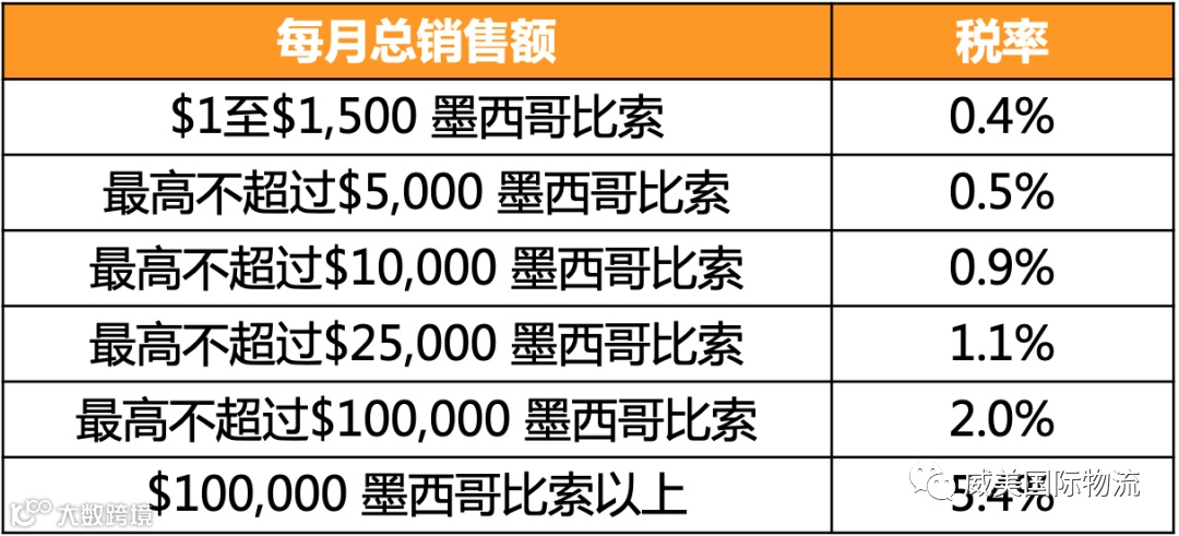 ▶ 如果已注册有效的 RFC ID,且你是个人注册卖家(自然人),亚马逊将根据卖家的每月总销售额按照 0.4%-5.4% 税率计算所得税,并将这些金额汇给墨西哥税务机构。