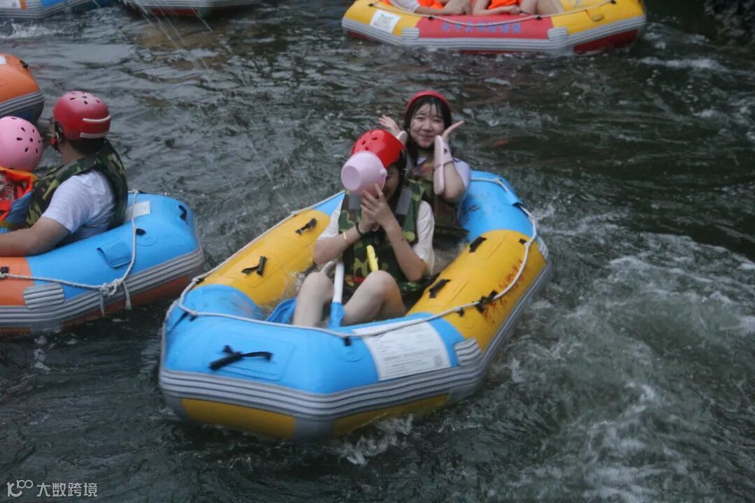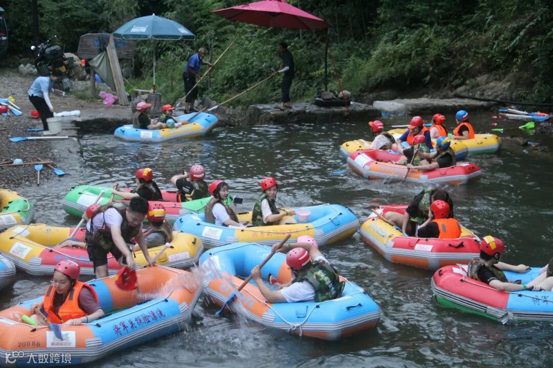 在大家目标一致的情况下,我们赶到了 “华东第一险漂”--将军关漂流。全程2.2公里,约1.5小时。一开始大家都觉得不就是个漂流嘛,还能玩出什么花样来吗?但是第一关就给大家来了个下马威,从坡上冲下的那一刻,飞溅的河水浇透了衣服,这才是第一关,剩下还有很多道道关需要去打。将军关漂流的每道关是一个类似滑梯一样的陡坡,陡坡下了之后是水池,漂流总落差130米,大小落差分布46处,真的不刺激都不行。在这里大家都变成了孩子一样,唤起了大家寻乐的童心,皮筏艇相撞自然少不了要一场溪水激战,大家拿起水瓢互相“攻击”,在河道里你追我赶。结束之后,大家高呼过瘾,尽管衣服都湿透了,但还是很高兴。