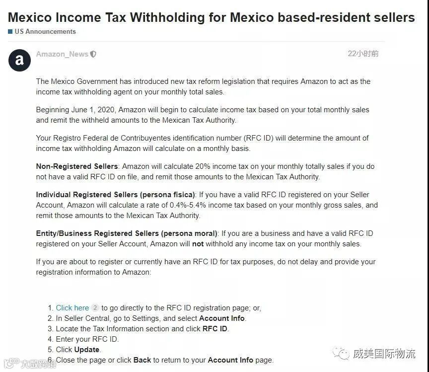 本以为这阵风就在欧洲大地刮刮,没想到现在肆虐到北美来了,现在就连墨西哥站都要求提供合规税号,缴纳20%的VAT了。