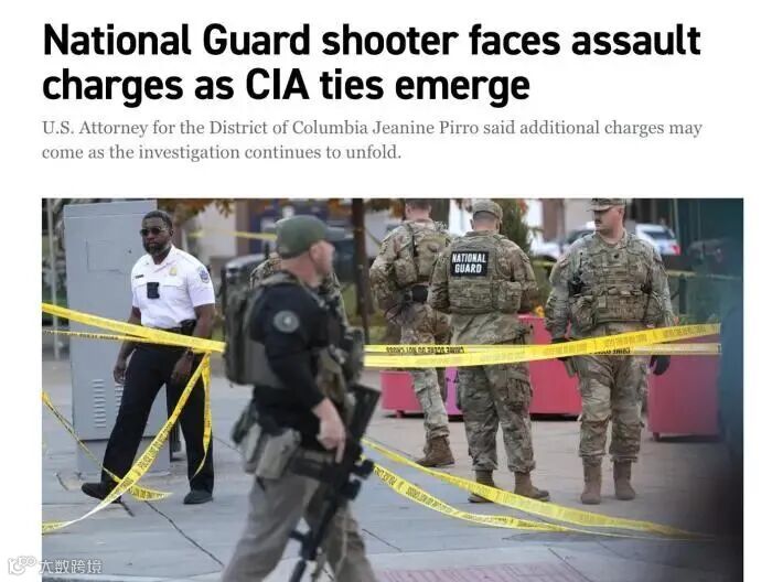 美司法部长邦迪称,联邦特工已抵达华盛顿特区两名国民警卫队成员遭枪击的现场。