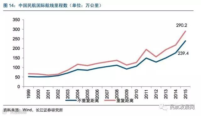 根据民航局公示的新开航线申请,2015 年前三季度新开辟的航线多为日韩、东南亚等,因此新增航线里程中和之前重复 的部分较少。
