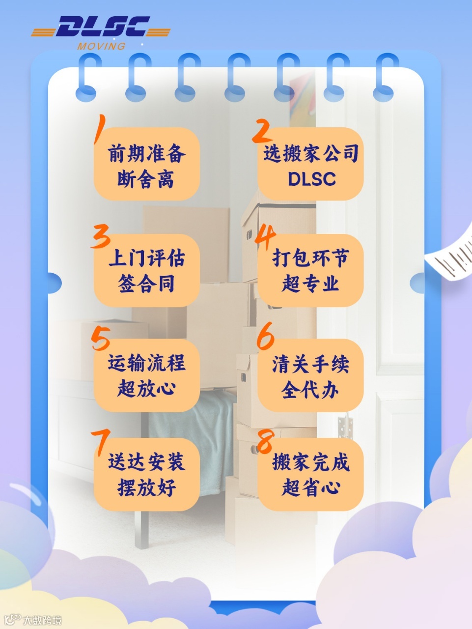 整个搬家过程,DLSC国际搬家会帮您安排得井井有条,服务超赞。强烈推荐给有到加拿大搬家需求的宝子们哦!