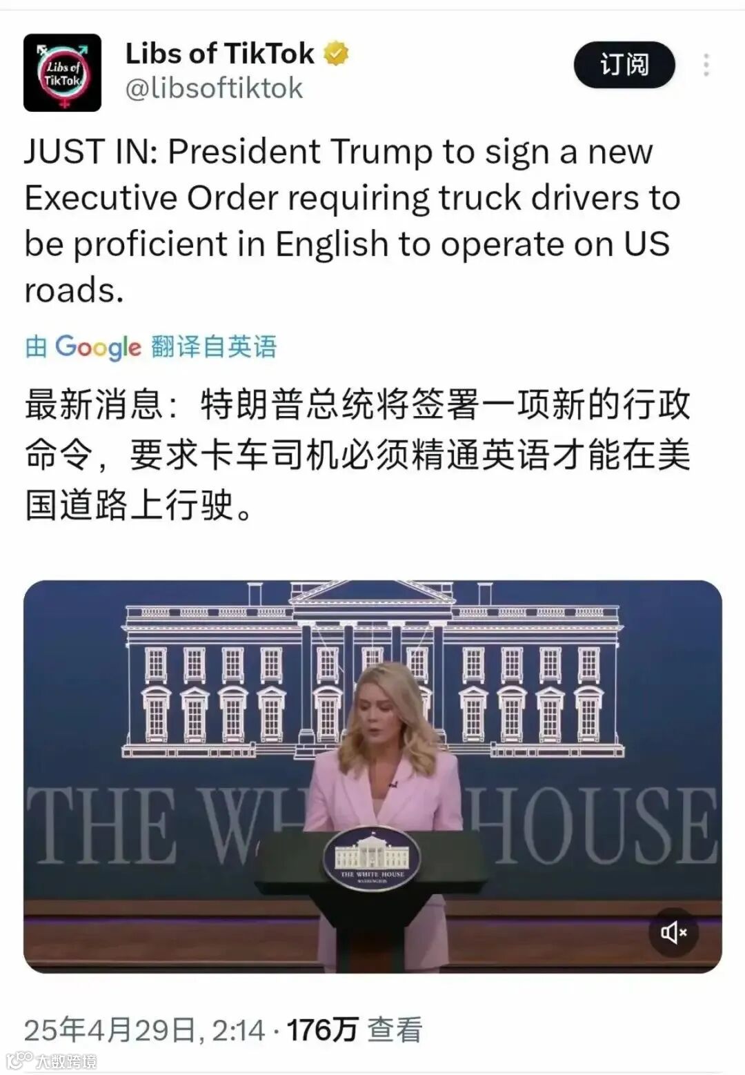 总统在行政令中强调,英文能力应成为专业司机的“基本门槛”。
