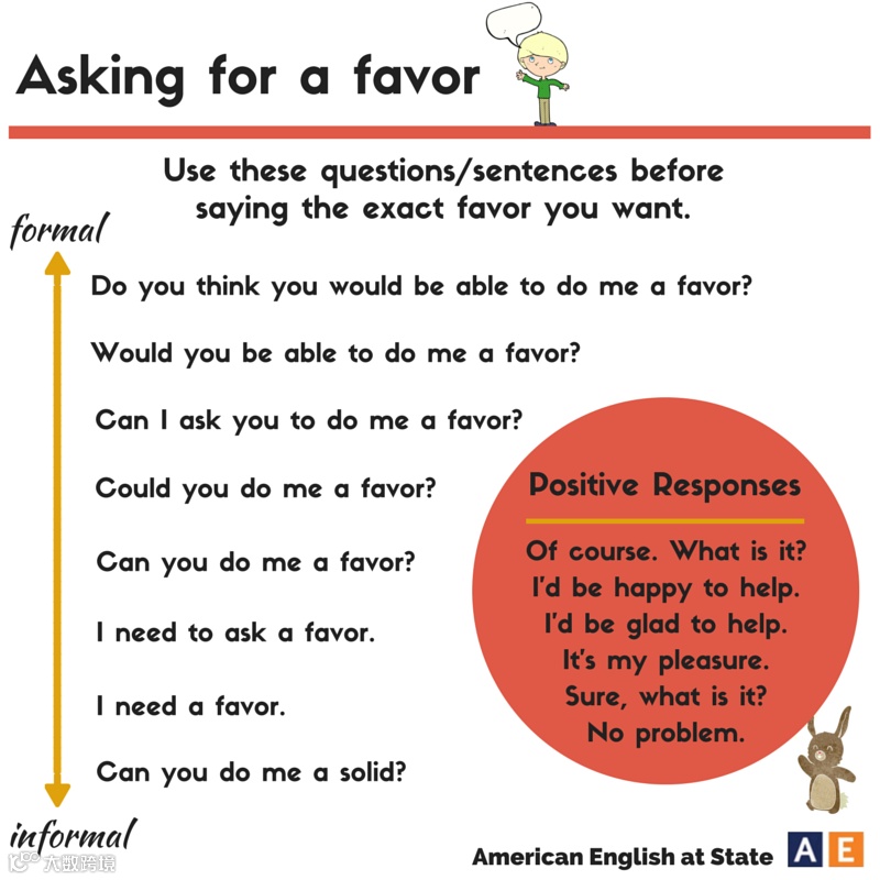 Check out this #AmericanEnglish graphic to learn more ways to ask for favors, ranging from formal to informal.Which of these ways do you usually use to ask for help?