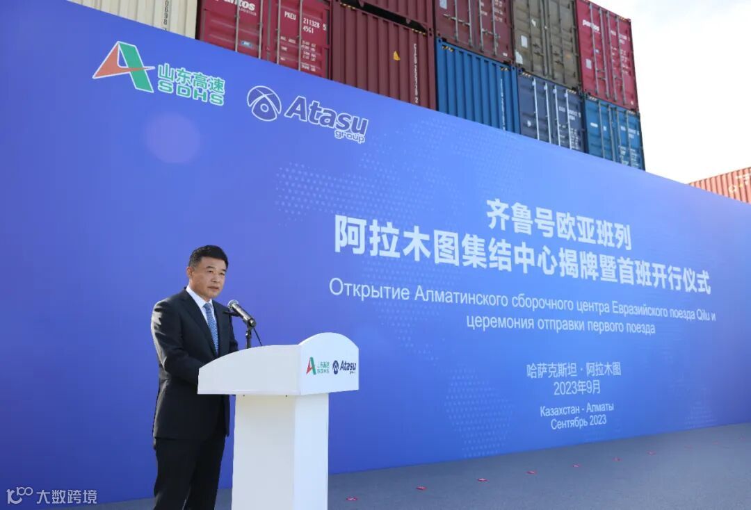 王其峰在活动致辞中指出,本次活动是山东高速集团进一步融入“一带一路”高质量发展,落实中国—中亚峰会成果清单的重要举措和具体行动。中亚线路是“齐鲁号”打造东连日韩、西接欧亚国际物流大通道的主干线路,能充分助力发挥我省区位和产业基础优势。阿拉木图地处中、哈、吉三国交界处,是古丝绸之路的必经之地,也是中亚地区集公路、铁路、空运为一体的重要交通枢纽。“齐鲁号”将首个境外集结中心设立在阿拉木图布伦代场站,一是基于场站地理位置优越,二是看重哈方合作伙伴阿塔苏集团在中亚地区货运领域的强大服务能力。齐鲁号欧亚班列阿拉木图集结中心的设立,标志着山东与阿拉木图之间经贸合作进一步加深,也将为中哈两国加强交流沟通、实现共同繁荣注入新的动力。