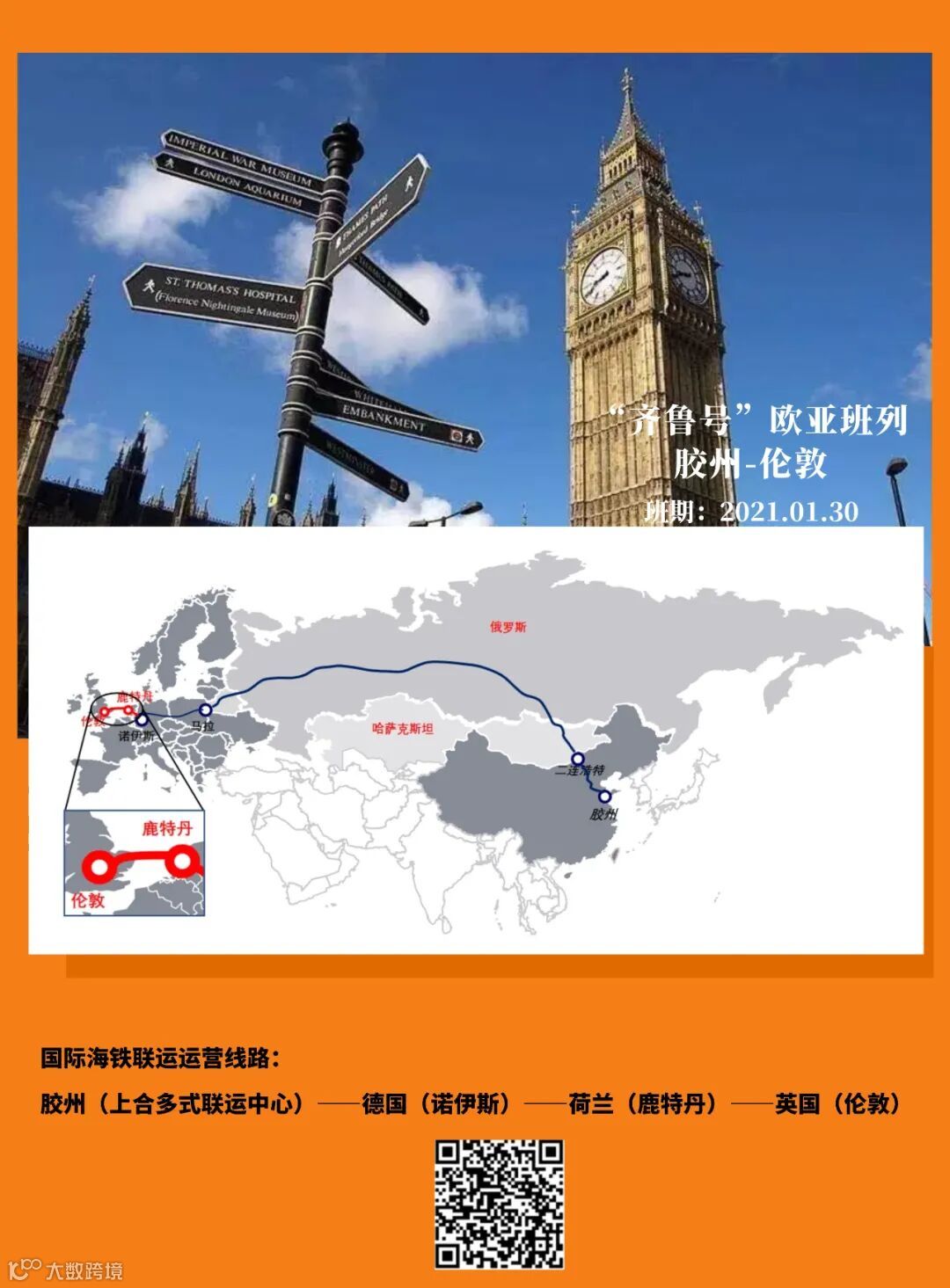 “齐鲁号”欧亚班列(胶州—伦敦)国际海铁联运新线路首发在即