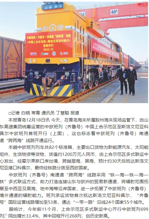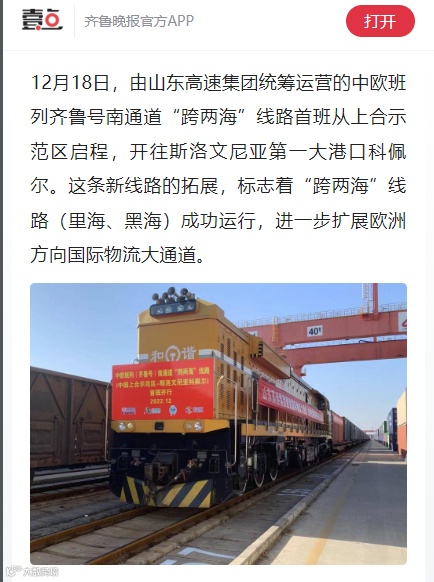 中欧班列(齐鲁号)开行第1900列、提前完成2022年开行任务目标,以及铁水联运再添线路、