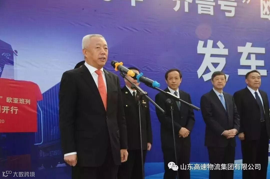 省政府副省长凌文,以及省政府办公厅、省国资委、省交通运输厅、省发展改革委、省财政厅、省商务厅、济南市政府、国家粮食和物资储备局山东局、济南市口岸办、中远海运物流有限公司相关领导出席发车仪式。省政府副省长凌文宣布2019年“齐鲁号”欧亚班列第1000列开行,省国资委党委书记、主任张斌主持仪式,山东高速集团党委书记、董事长邹庆忠发表致辞。