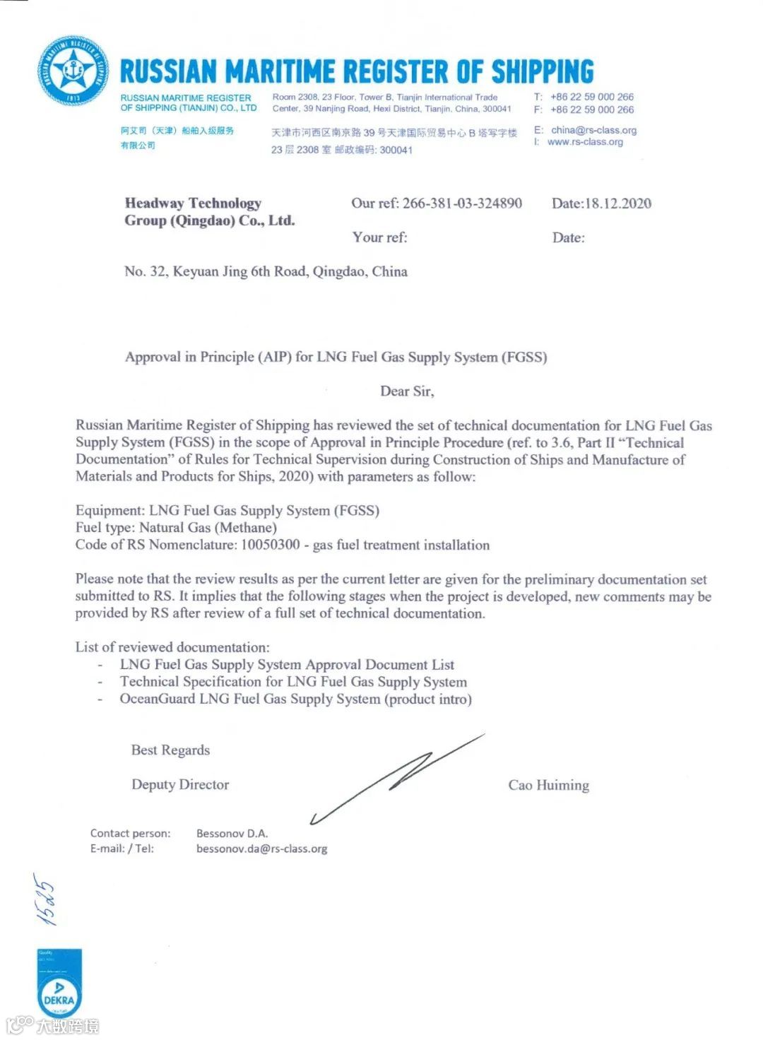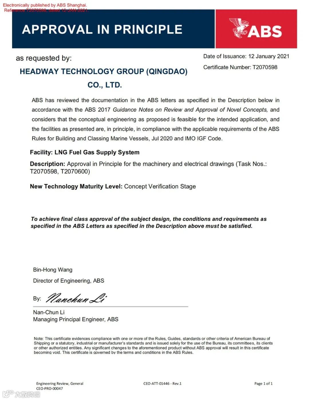日前,由海德威科技集团联合国内权威科研机构和顶级高校共同研发的具有自主知识产权的海洋卫士®FGSS,正式获得由美国船级社(ABS)、法国船级社(BV)、俄罗斯船级社(RS)以及意大利船级社(RINA)授予的原理认可证书(AiP)。这是该产品继去年获得DNV GL原理认可证书「详情」之后,再次获得多家国际主流船级社原理认可。