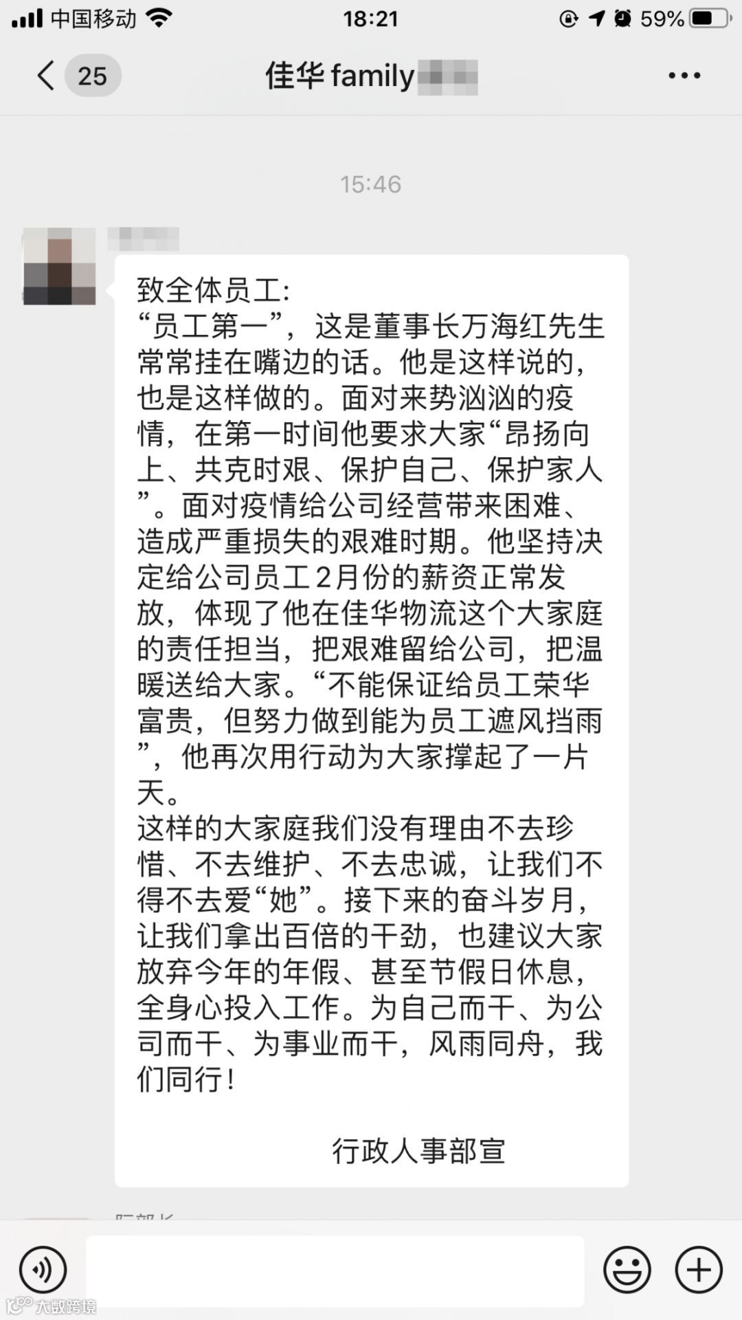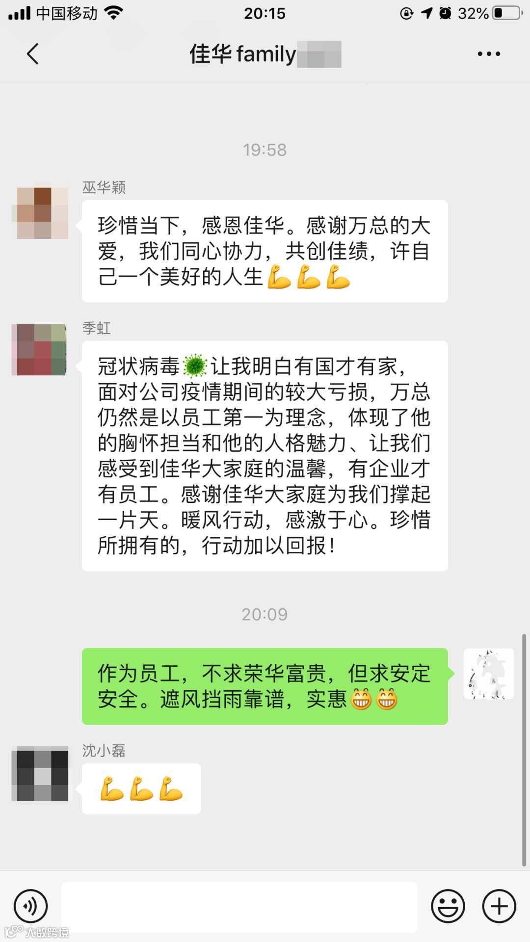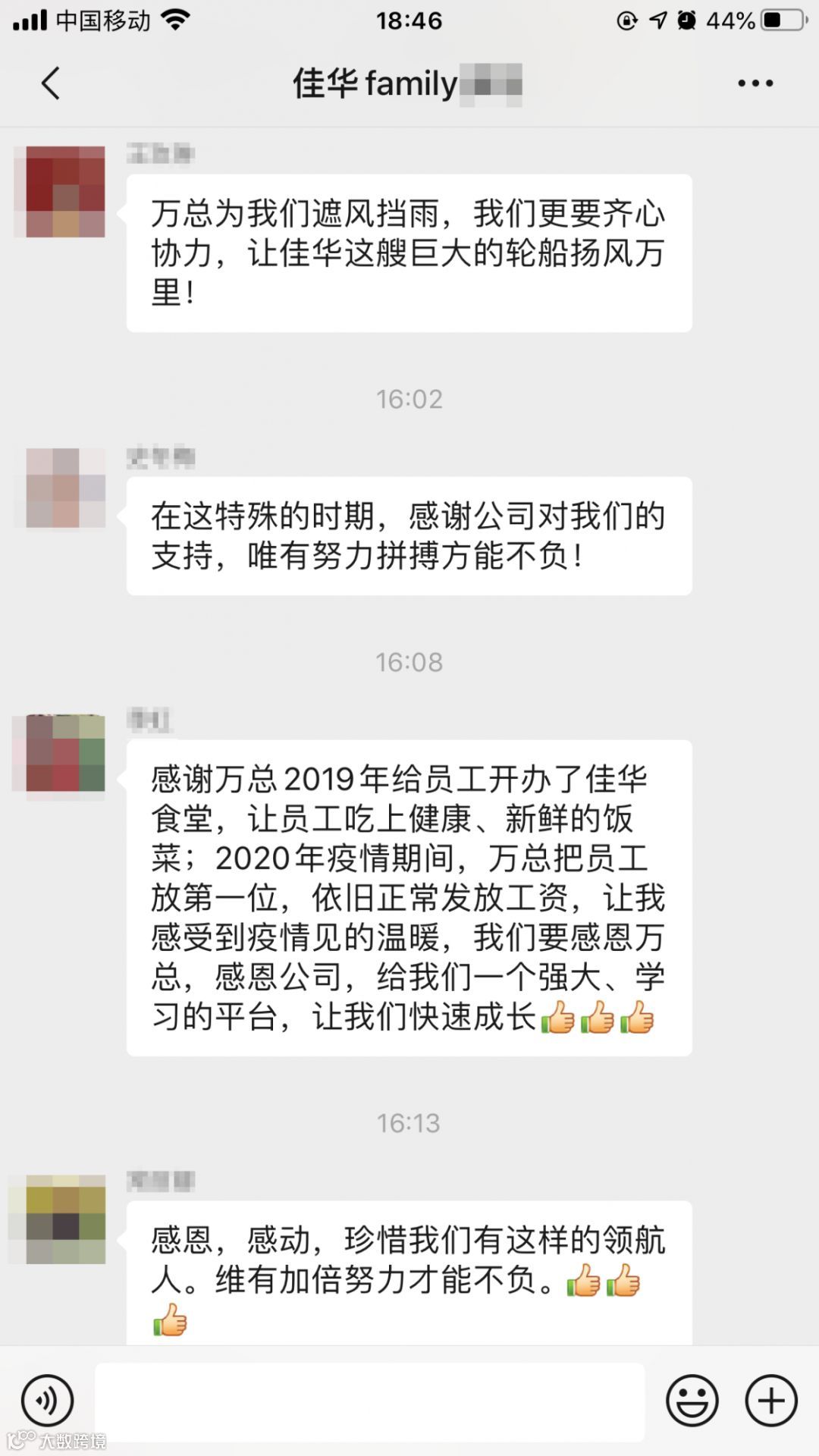 “员工第一”理念,公司用行动诠释的淋漓尽致,践行了“努力做到为员工遮风挡雨”。面对疫情,公司把艰难留给自己,把温暖送给员工。这份沉甸甸的责任担当,让全体员工为之感动。在这个温暖的大家庭里,我们要倍加珍惜、倍加努力,为自己、为家人、为公司奋战!