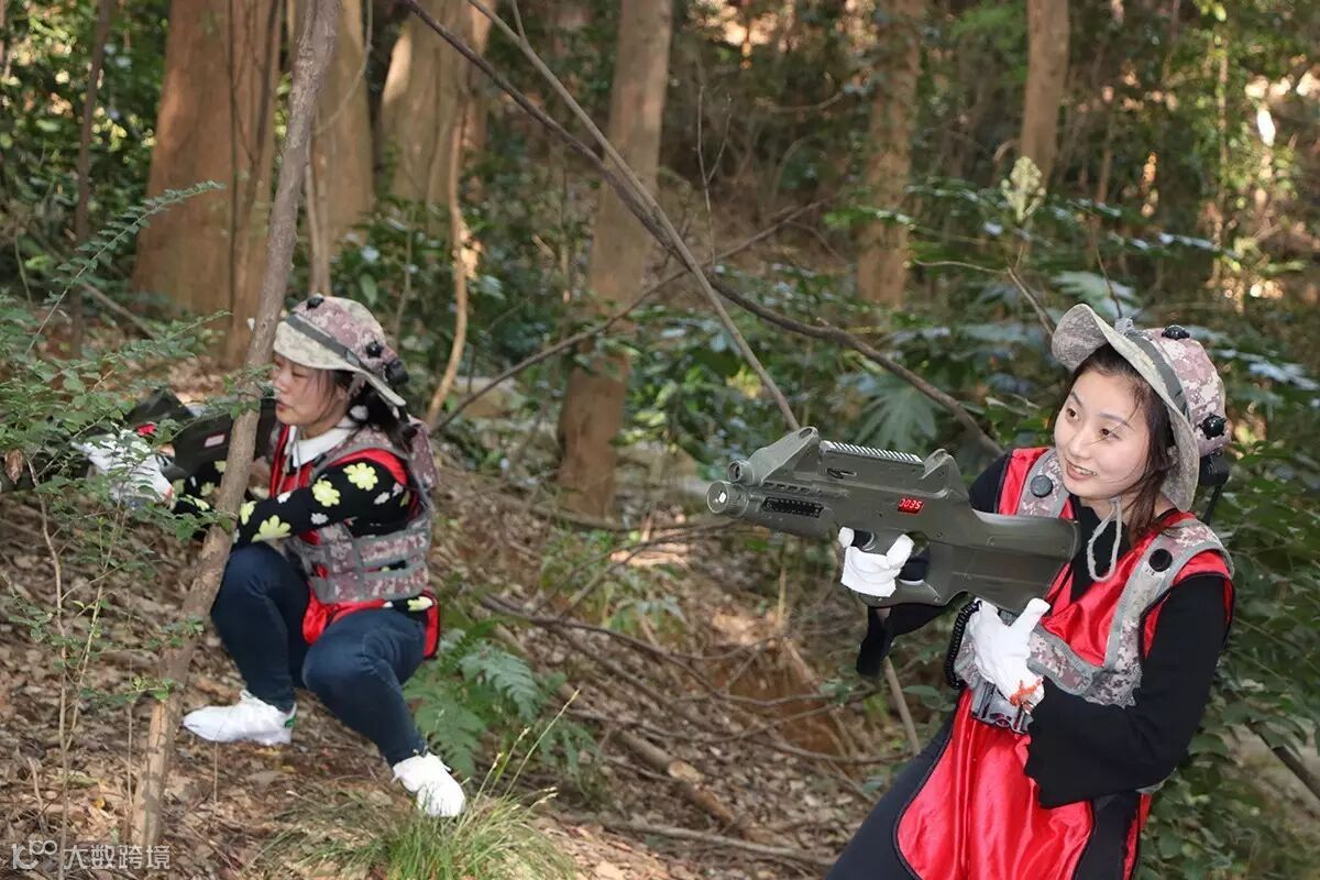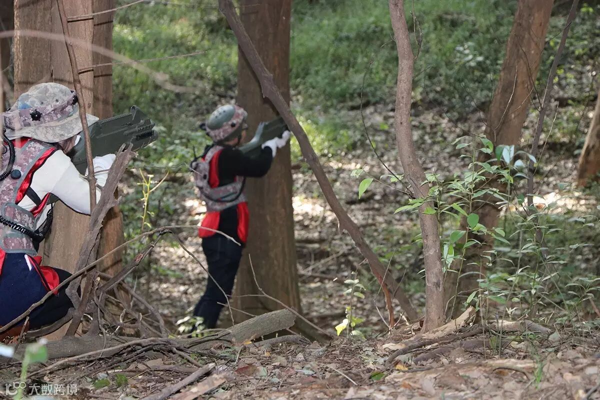 大家有模有样的拿起枪瞄准前方,整装待发。