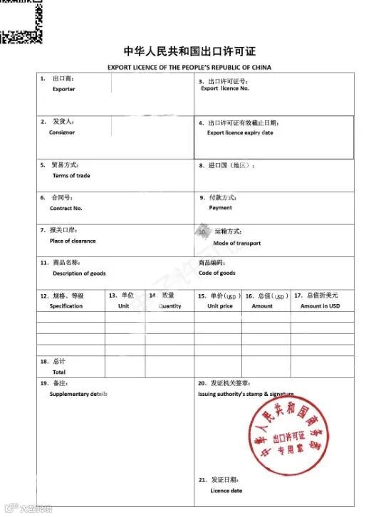 许可证局签发:小麦、玉米、煤炭、原油等 -