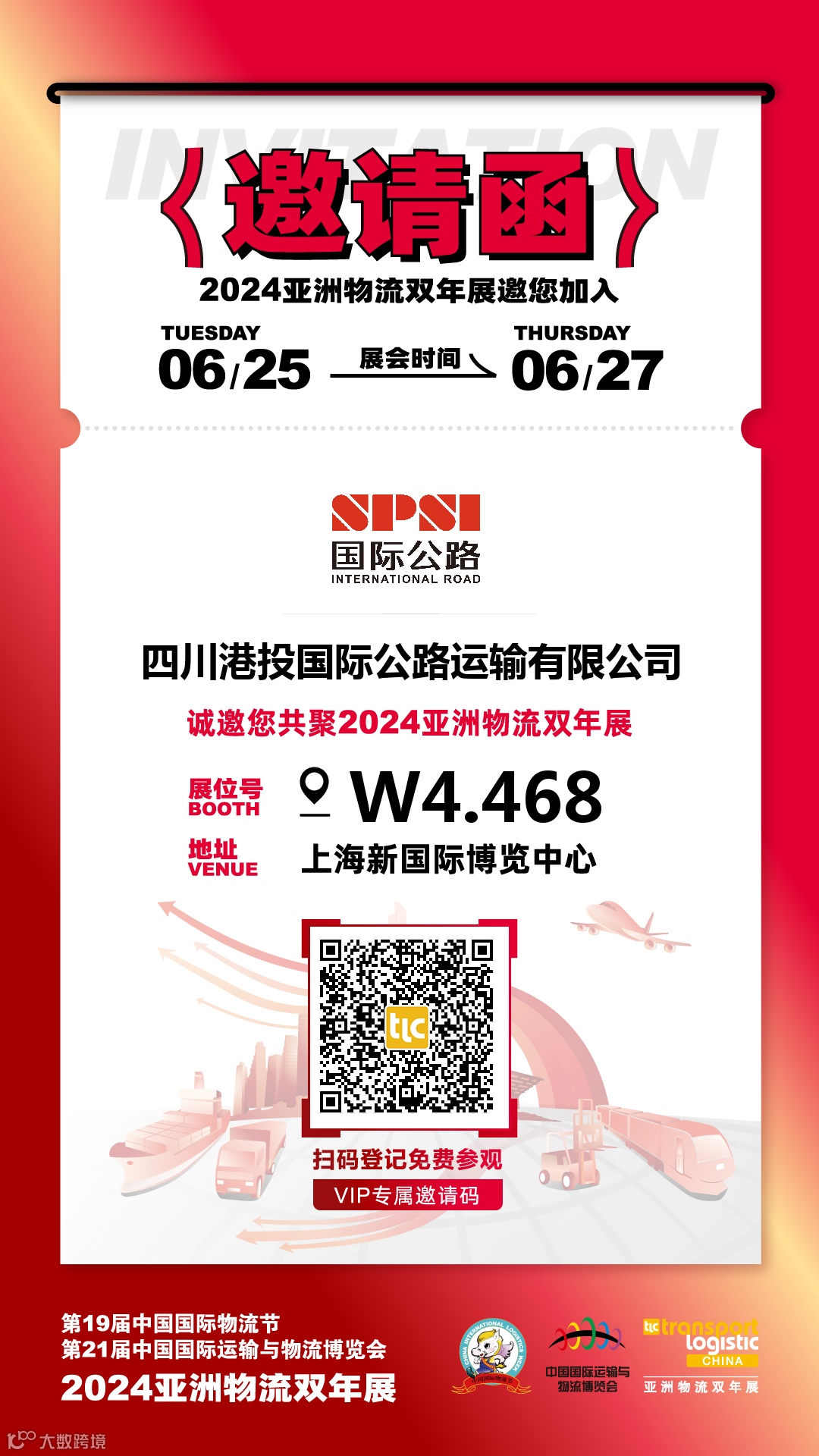 2024亚洲物流双年展开展在即,四川港投国际公路运输有限公司诚邀各位于6月25日-6月27日莅临我司参观洽谈。